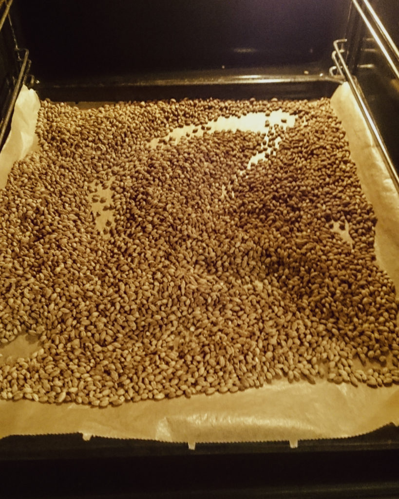 Auf den Erfolg mit dem Hochzeitsbier folgt gleich der nächste Streich. Wie wäre es denn mal mit nem Irish Red Ale?! Ein Besonderes Highlight, das sich vor allem auch am Ende im Geschmack widerspiegelte: Robi hat die Bude eingeräuchert, damit wir beim Maischen selbst geröstete Gerste einsetzen konnten. Der Prozess sollte ja mittlerweile bekannt sein.